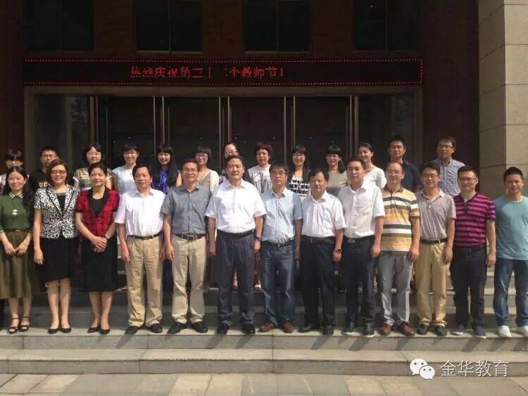 趙光君書(shū)記與金華市外國(guó)語(yǔ)學(xué)校老師親切握手,并合影留念